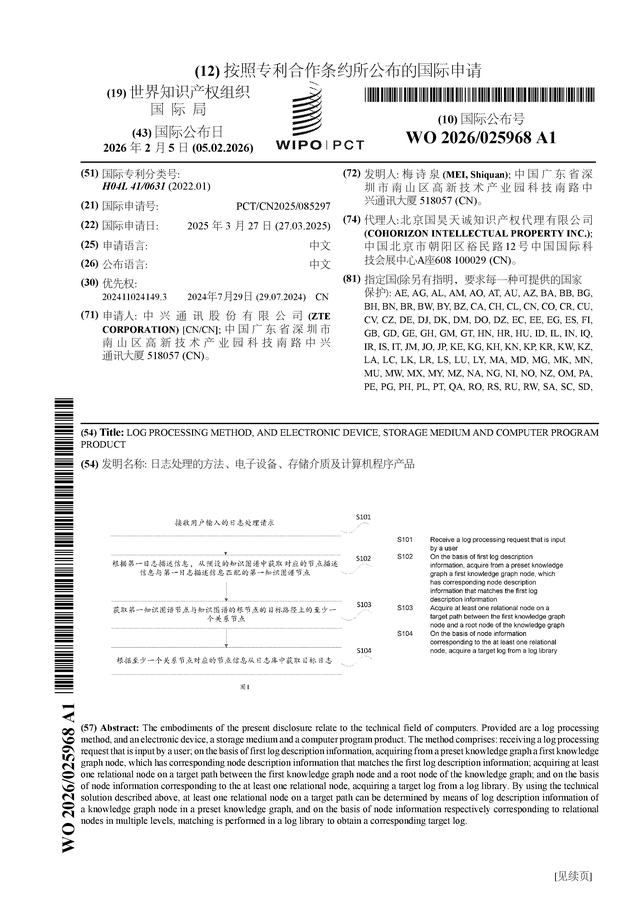 证券之星消息,根据企查查数据显示中兴通讯(000063)公布了一项国际专利申请,专利名为“日志处理的方法、电子设备、存储介质及计算机程序产品”,专利申请号为PCT/CN2025/085297,国际公布日为2026年2月5日。