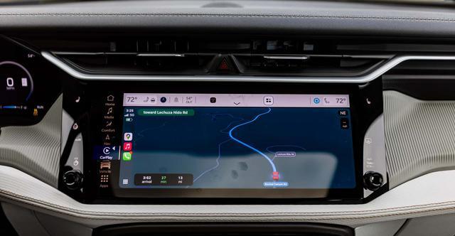 黑色的Jeep车标,还有保险杠后保险杠部分的黑色装饰等元素形成对应,让整车的风格形成统一。在内饰部分则是全新的体验,上一代车型毕竟已经是十几年前的产物,本次的新车采用了略微偏下的略带悬浮设计的宽屏,搭载全新的车机,配合液晶仪表盘组成了双屏系统,科技感有着明显的提升,而平直的中控台面,两侧略微上翘,加入了层次感丰富的装饰,弯折的空调出风口镀铬条,以及特殊质感面板覆盖,加上皮革缝线等元素,豪华感有着出色的体验,是最显著的提升。