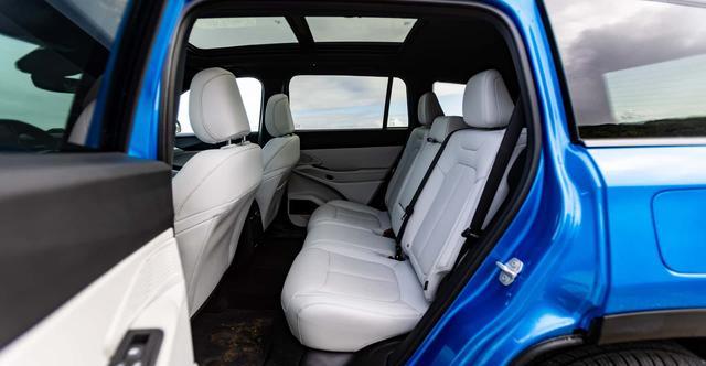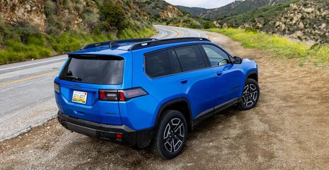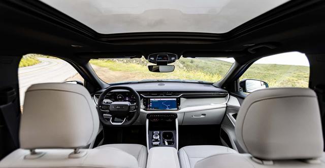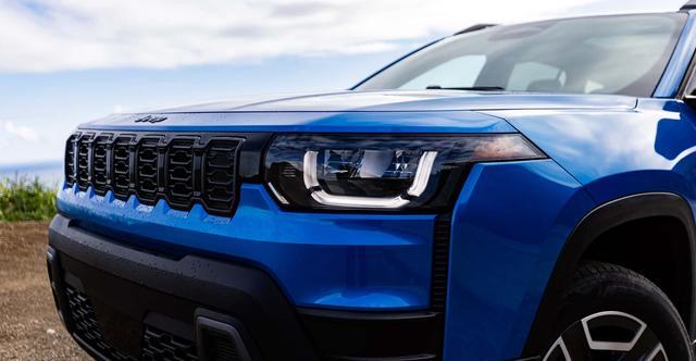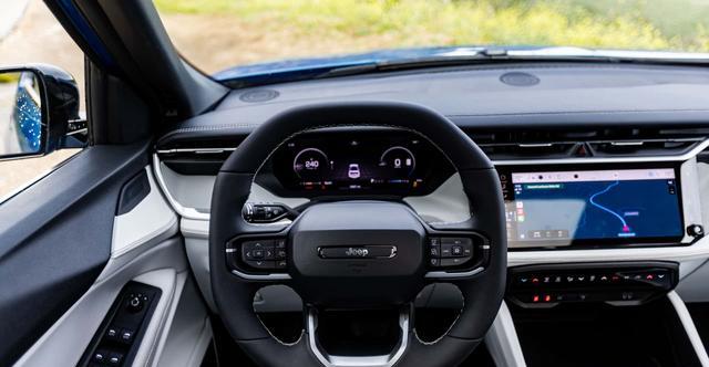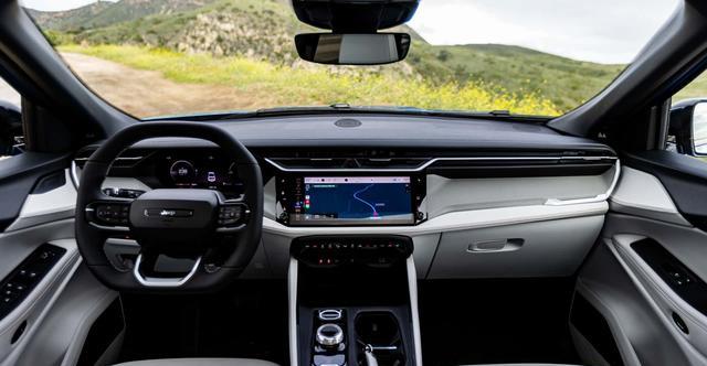 令人印象深刻的是多边形的平底方向盘,兼顾了运动感和科技感,而扶手箱前端区域则保留了旋挡旋钮式换挡机构,堪称Jeep的灵魂,门板装饰同样层次感丰富,可以给予好评,天窗等配置当然也都不会缺席。在动力方面,该车在美国搭载了1.6T四缸混动技术,综合最大功率213马力,0-96公里加速8.5秒,对一款中型燃油SUV有着基本正常的水平,突出燃油经济性和平顺性的表现,非常值得期待。
